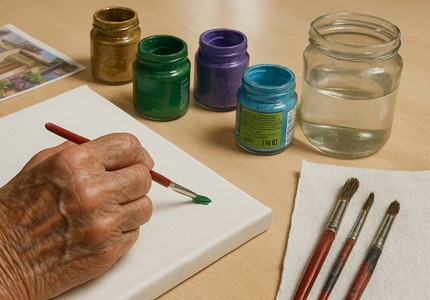 Als ich erfuhr, dass sie früher gern malte, lud ich sie zum kreativen Arbeiten ein ...