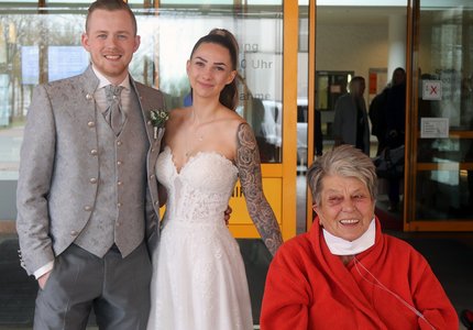 Eine Hochzeit mitten im Krankenhaus? Genau das erlebten Nadine und Ludwig Löffler, als sie ihre Trauung 2020 kurzerhand in die Kapelle der Kreisklinik Altötting verlegten – damit Oma Inge dabei sein konnte. Eine rührende Geschichte ...