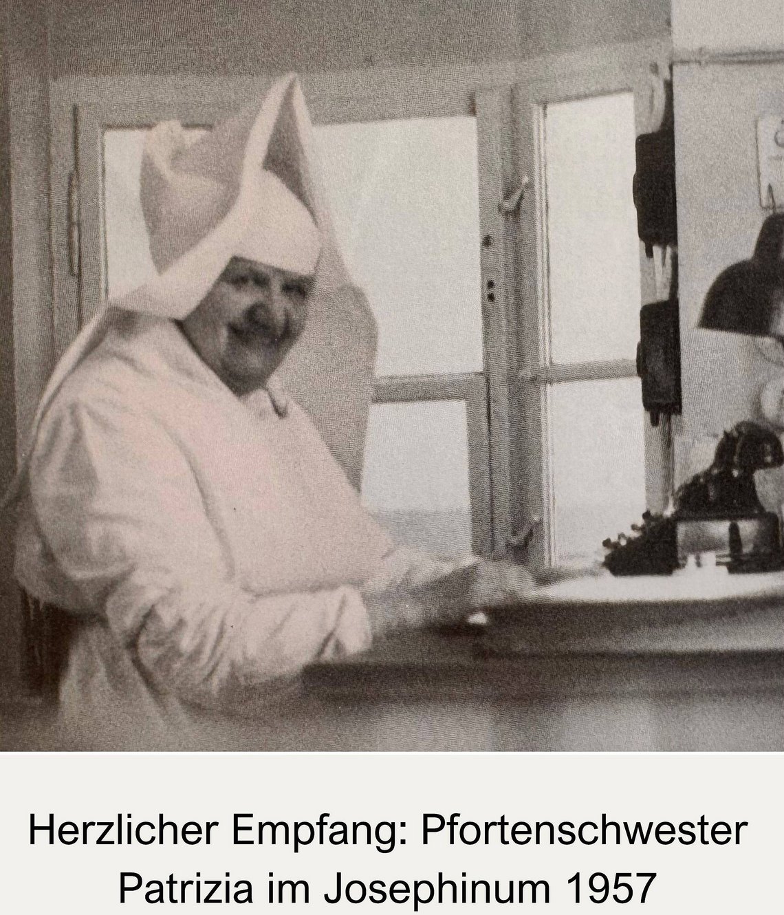 Mittendrin standen im Fokus allen Tuns die Menschen, die nie aufgegeben haben. Zum Beispiel Sr. Mansuetta, die im Krieg mit Organisationstalent und Mut den Klinikbetrieb aufrechterhielt. Oder Sr. Patrizia, die ab 1957 als Pfortenschwester das freundliche Gesicht der Klinik war – für viele der erste Kontakt, noch bevor der Arzt ins Spiel kam – Häubchen inklusive.