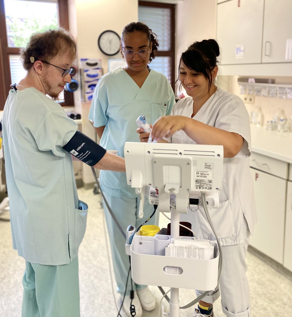 Iven Alheidt (21) war sich seines Berufswunsches schon früh bewusst: Pflegefachkraft will er werden und anderen Menschen helfen. Seit knapp einem Jahr leistet er seinen Bundesfreiwilligendienst in unserer Klinik. Aufgrund einer gesundheitlichen Einschränkung erfordert der Arbeitsalltag bei ihm manchmal etwas mehr Planung, Geduld und Kraft. Trotzdem ist er jeden Tag im Dienst – pünktlich, verlässlich und über die Maßen engagiert: „Ich liebe den Umgang mit Menschen und die Arbeit im Team. Die Kollegen haben so viel Vertrauen in uns und lassen uns viel eigenständig arbeiten – das ist toll“. Aus dem Klinikalltag ist Iven (nicht nur wegen seiner Vorliebe zum Schichtdienst) mittlerweile nicht mehr wegzudenken: Im Herbst beginnt er die einjährige Ausbildung zum Pflegefachhelfer an der Klinik.