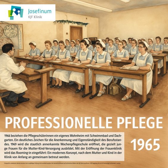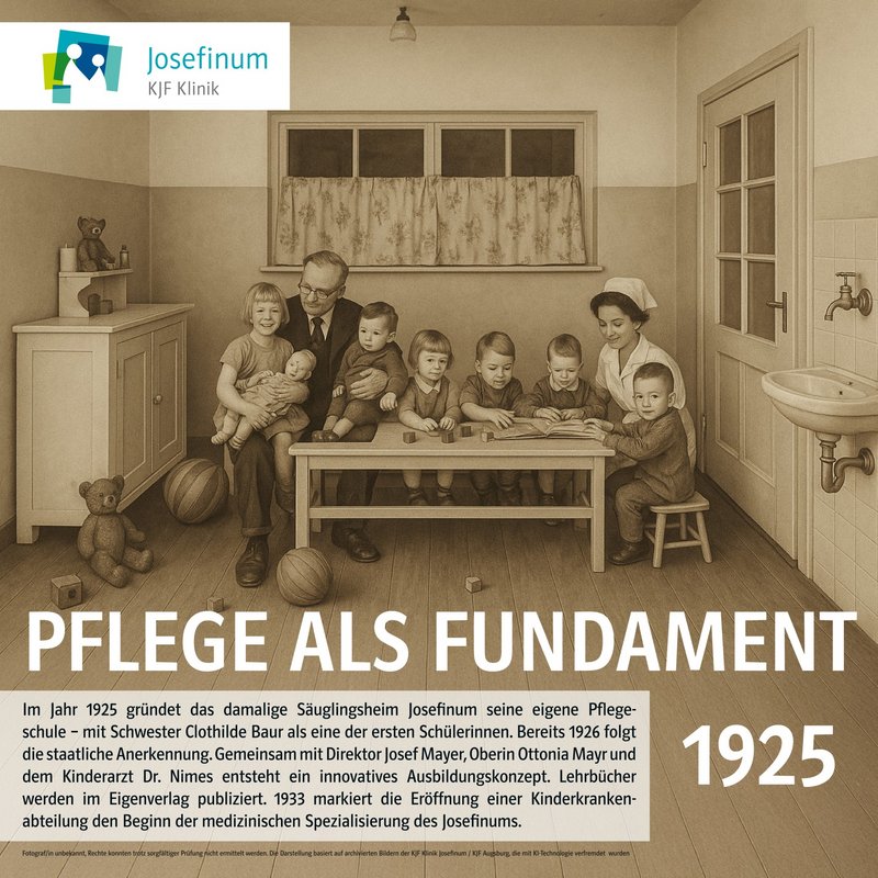 Seit der Gründung der Pflegeschule im Jahr 1925 prägen Menschlichkeit, Professionalität und Innovationsgeist die Ausbildung in der Pflege an der KJF Klinik Josefinum in Augsburg. Die Pflegeschule besteht in diesem Jahr seit 100 Jahren.