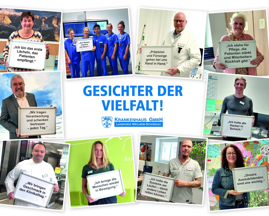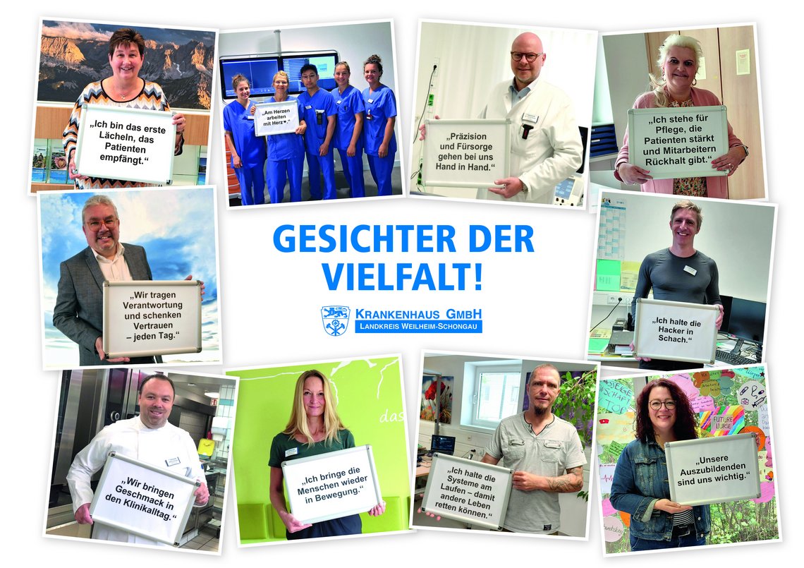 Wir zeigen damit, wer hinter der sicheren und engagierten Gesundheitsversorgung bei der Krankenhaus GmbH Landkreis Weilheim-Schongau steht: Menschen mit unterschiedlichen Geschichten, Fähigkeiten und Leidenschaften, die gemeinsam für ein Ziel arbeiten: Die bestmögliche Versorgung der Patientinnen und Patienten im Landkreis Weilheim-Schongau. Vielfalt ist unsere Stärke!