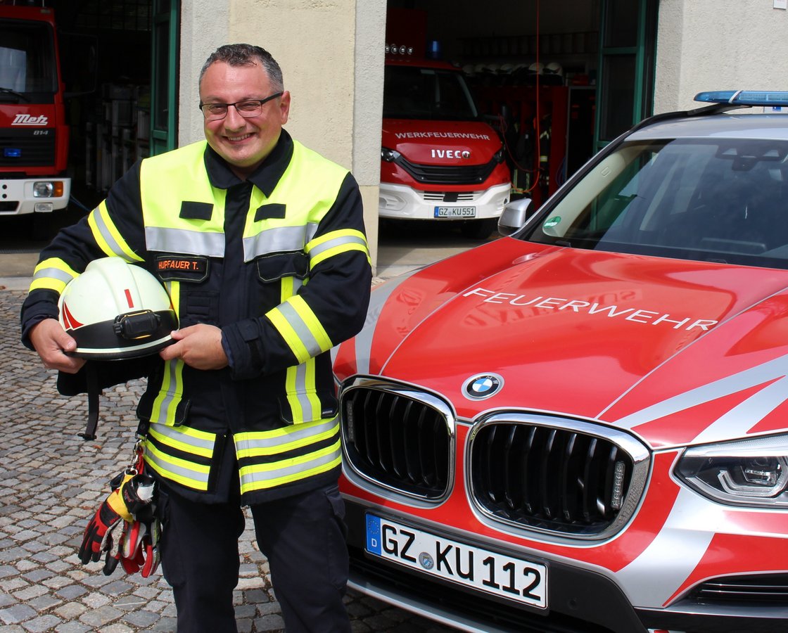 Tobias Hupfauer findet die Tätigkeit faszinierend. „Man kommt viel rum und lernt alle Bereiche und Stationen kennen. Es macht Spaß, über den Tellerrand zu blicken“, sagt der Kommandant, der der örtlichen Regionalleitung zugeordnet ist und zusätzlich die Aufgabe als Brandschutzbeauftragter des BKH innehat. Den verheirateten, zweifachen Familienvater imponieren der Teamgeist und das Miteinander innerhalb seiner Truppe. Der gemeinsame Antrieb ist – Stichwort Helfersyndrom – anderen Menschen helfen zu können. Das tut er einerseits „aus Betriebsinteresse“ hauptberuflich für das Unternehmen Bezirkskliniken Schwaben und andererseits ehrenamtlich als Mitglied der Freiwilligen Feuerwehr Günzburg. Womit wir wieder beim angesprochenen „Blaulicht-Syndrom“ wären….