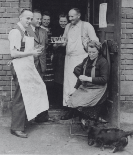 Nun haben sich Zeitzeugen beziehungsweise deren Nachfahren mit berührenden Erinnerungen an unsere Klinik gewandt. Michael Krüger, Jahrgang 1962, dessen Großmutter mütterlicherseits mit anderen Verwandten die Wirtschaft „Kuhr`scher Keller“ in Rednitzhembach/Plöckendorf in der Nähe von Schwabach betrieb, berichtet, dass Dr. Fritz Erler ein gern gesehener Gast an den regelmäßig stattfindenden Schlachttagen war: „In den 50er Jahren ist er fast immer am Schlachttag mit dem Zug hergefahren, immer mittwochs. Er half fast jedes Mal – vor allem bei der Herstellung des Pressacks war Dr. Erler anzutreffen, wie er akribisch das Fleisch in gleichgroße Stückchen schnipselte“. Bei der Übergabe des historischen Fotomaterials habe Michael Krügers Tante, Jahrgang 1930, ihm wortwörtlich folgende Worte mitgegeben: „Herr Dr. Erler wäre zutiefst beleidigt gewesen, wenn er in seiner Freizeit nicht beim Wurstmachen hätte mithelfen dürfen“.
