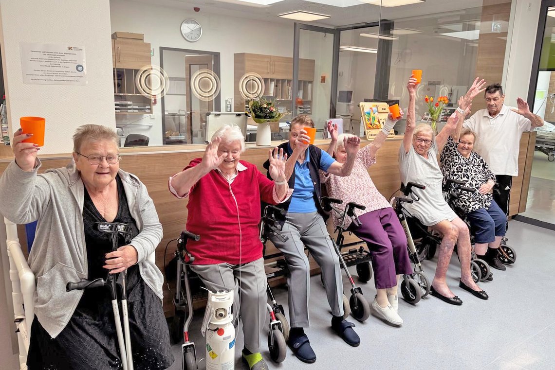 …wie man seinen Patientinnen und Patienten den Tag versüßen kann? Mit Spontanität und Abwechslung! Am Muttertag durften die Patientinnen und Patienten der Geriatrie kurzerhand einen kleinen "Ausflug" auf die Station machen. Vor Ort wurde geturnt, erklärt, gelacht und alte Geschichten zum Besten gegeben. Die hochbetagten Damen und Herren hatten sichtlich Spaß – sieht man auch, oder?
