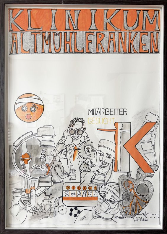 Hinter manchen Mitarbeitenden verbergen sich wahre Künstler/-innen! Diese tollen Zeichnungen stammen aus der Feder von Ursula Büchler, langjährige Mitarbeiterin und Personalrätin des Klinikums Altmühlfranken, und zeigen Einblicke in das bunte Klinikleben von damals und heute.
