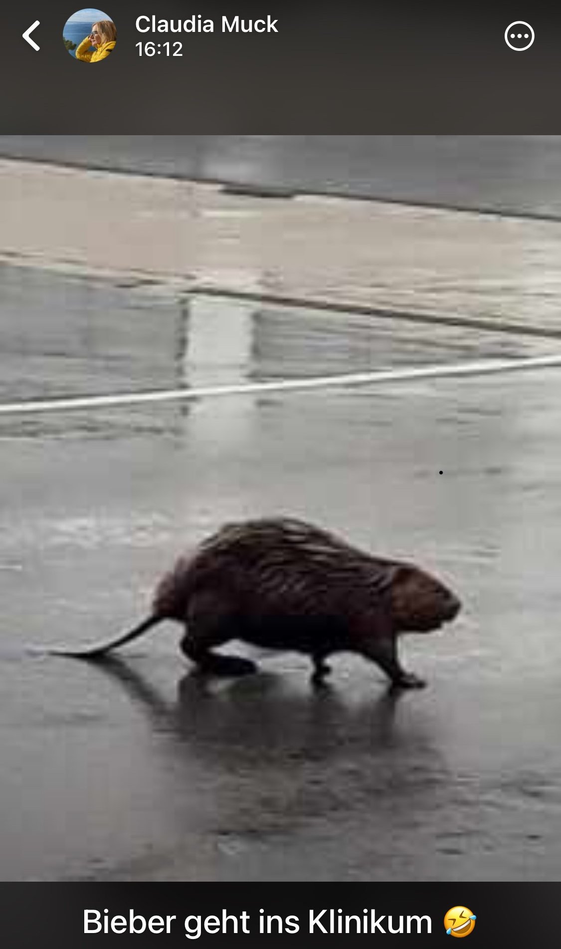 Umso erstaunlicher ist es, was Claudia und ihre Kolleginnen und Kollegen nach einem Starkregen beim Spätdienst plötzlich vom Fenster aus sahen. Ein ausgewachsener Biber stapfte seelenruhig im Bereich des Haupteingangs Richtung Notaufnahme. Wir wissen bis heute nicht, ob er Herzprobleme hatte, ihm der Rücken schmerzte oder sich das Zahnfleisch beim Baumfällen entzündet hatte.