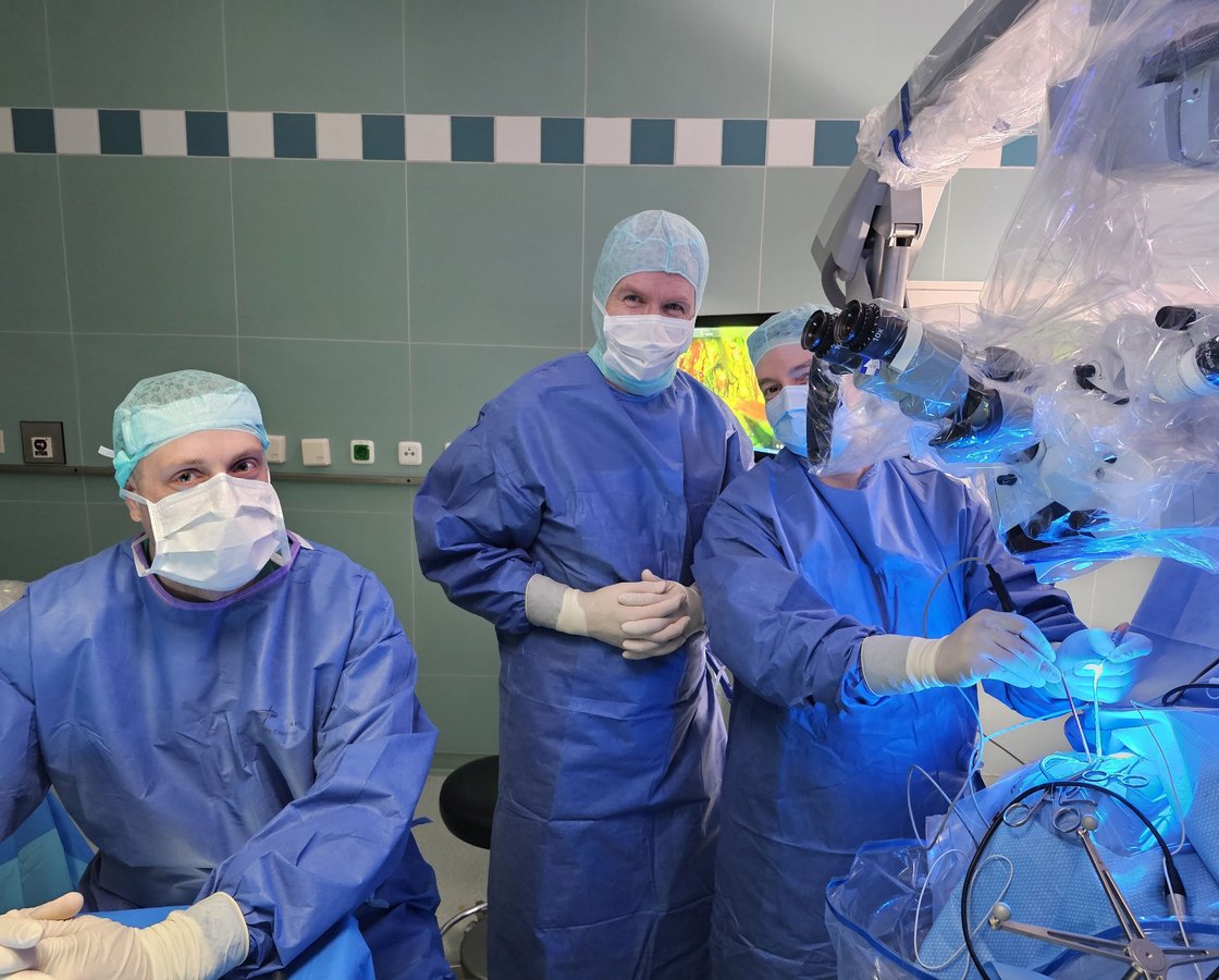 Oktober 2024. In der Klinik für Neurochirurgie des Sana Klinikums Hof wurde erstmals eine Wachoperation durchgeführt. Priv. Doz. Dr. Domagoj Jugovic, Chefarzt der Klinik für Neurochirurgie, und seine Operateure Dr. Sotirios Katsigiannis und Dr. George Simion operierten eine 54-jährige Patientin im Wachzustand an einem Hirntumor in der Nähe des Sprachzentrums. Die Patientin hatte nach der Operation weder Sprachstörungen noch andere neurologische Ausfälle und konnte bereits nach einer Woche nach Hause entlassen werden.